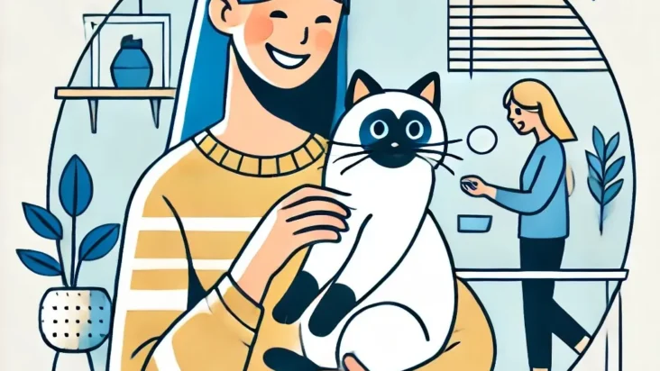 A delightful image of a woman sharing a loving moment with her fluffy cat, showcasing the joy of pet companionship.