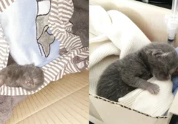 in Cat StoriesTiny Parking Lot Kitten Walked Up to a Stranger — Now She Can’t Stop Purring in Her New Safe Place