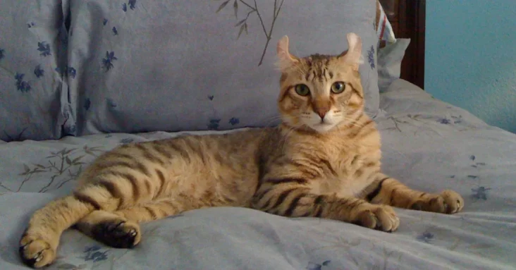 Breeders started with two other hybrid-looking domestic breeds—the Desert Lynx and the Jungle Curl. The result? A cat with a powerful, athletic body, curled ears, and a naturally short tail. Unsurprisingly, people often stop and ask, “Is that a wildcat?”