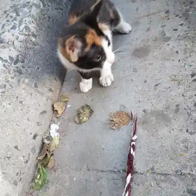 A tiny kitten appeared one morning behind an office building, alone in the back parking lot